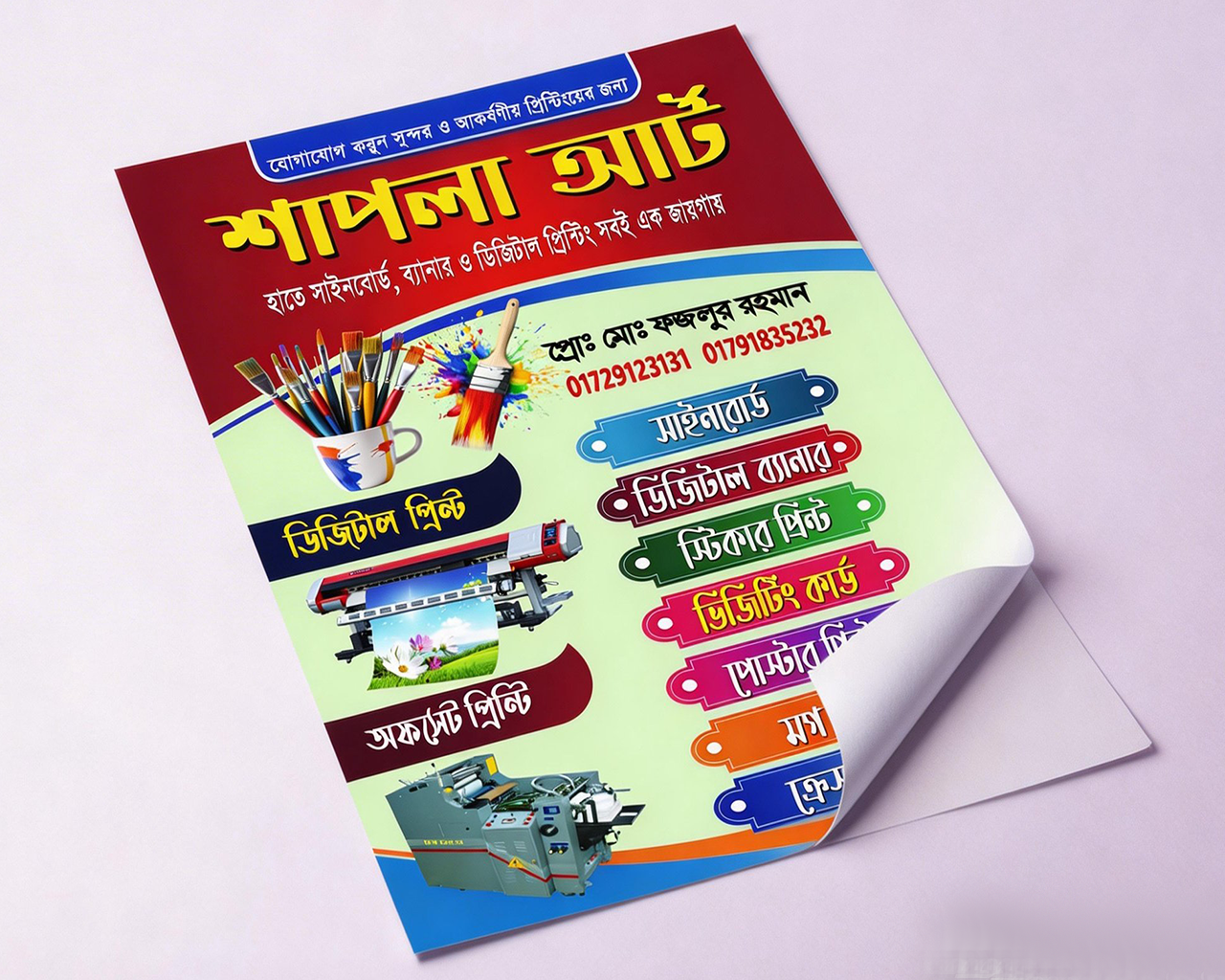 উন্নত মানের ডিজিটাল কালার প্রিন্ট।